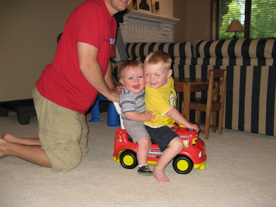 My son who cannot stand to have his picture taken, yelled to me "get the camera Mom" when he and Luke were riding on the firetruck tonight! Funny thing was, I was watching all of this thinking, "boy I'd sure like to take a picture, but I know Blake will freak out, so forget it!" Made my day!